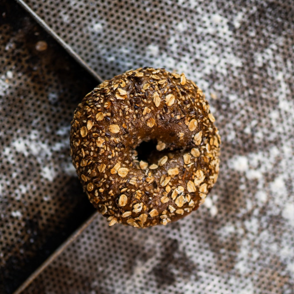 Herzhaft, nussig und rundum vollwertig – unser Weizenvollkorn-Bagel überzeugt mit seinem kräftigen Geschmack und seiner angenehm saftigen Krume. Veredelt mit aromatischen Malzflocken und einer ausgewogenen Mischung aus Sonnenblumen-, Leinsamen und Sesam, bietet er ein unvergleichlich kerniges Aroma und einen zarten Biss. Ob pur, mit Frischkäse oder herzhaft belegt – dieser Bagel ist ein Genussmoment voller natürlicher Energie und rustikaler Frische.