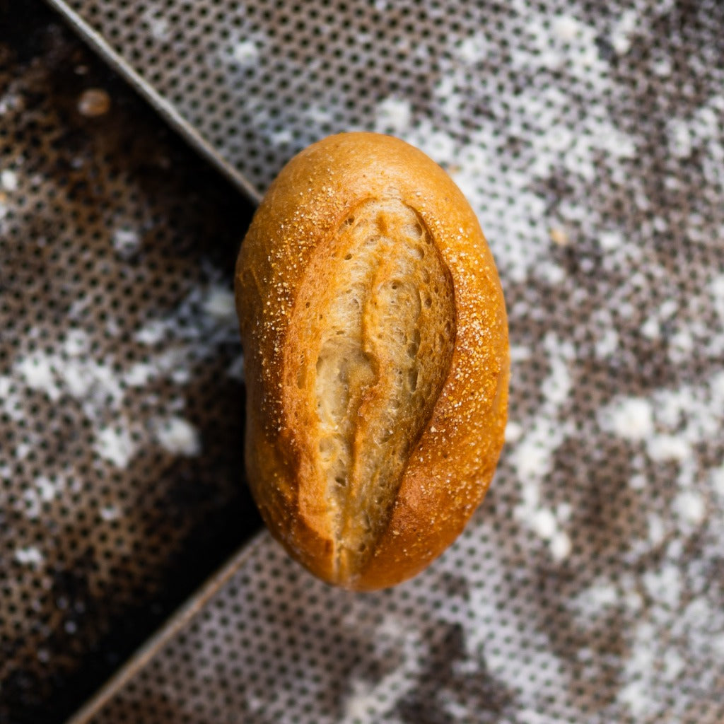 Unser Herdbrötchen ist ein saftiges Weizenbrötchen, das nach traditioneller Handwerkskunst direkt auf der heißen Steinplatte im Dampfbackofen gebacken wird. So entsteht die perfekte Kombination aus einer knusprigen, goldbraunen, aromatischen Kruste und einer wunderbar weichen, lockeren Krume. Jeder Bissen vereint zarten Weizengeschmack und die unvergleichliche Frische eines Brötchens aus echter Handwerkskunst.