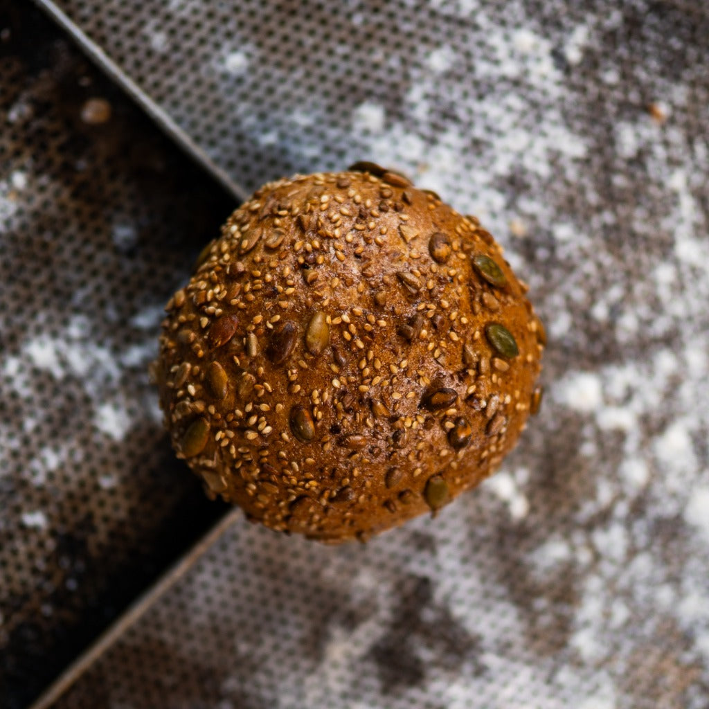 Unser Königsberger Brötchen ist eine Hommage an die Backkunst Ostpreußens: Aus kräftigem Roggenmischteig, verfeinert mit ausgewählten Saaten und goldbraunen Malzflocken, entsteht ein besonders saftiges und aromatisches Brötchen. Die Rezeptur orientiert sich an der traditionellen Königsberger Backkultur, die für ihre herzhafte, vollmundige Krume und feine Aromatik berühmt ist. Ein Brötchen, das Geschichte, Handwerkskunst und Genuss in jedem Bissen vereint