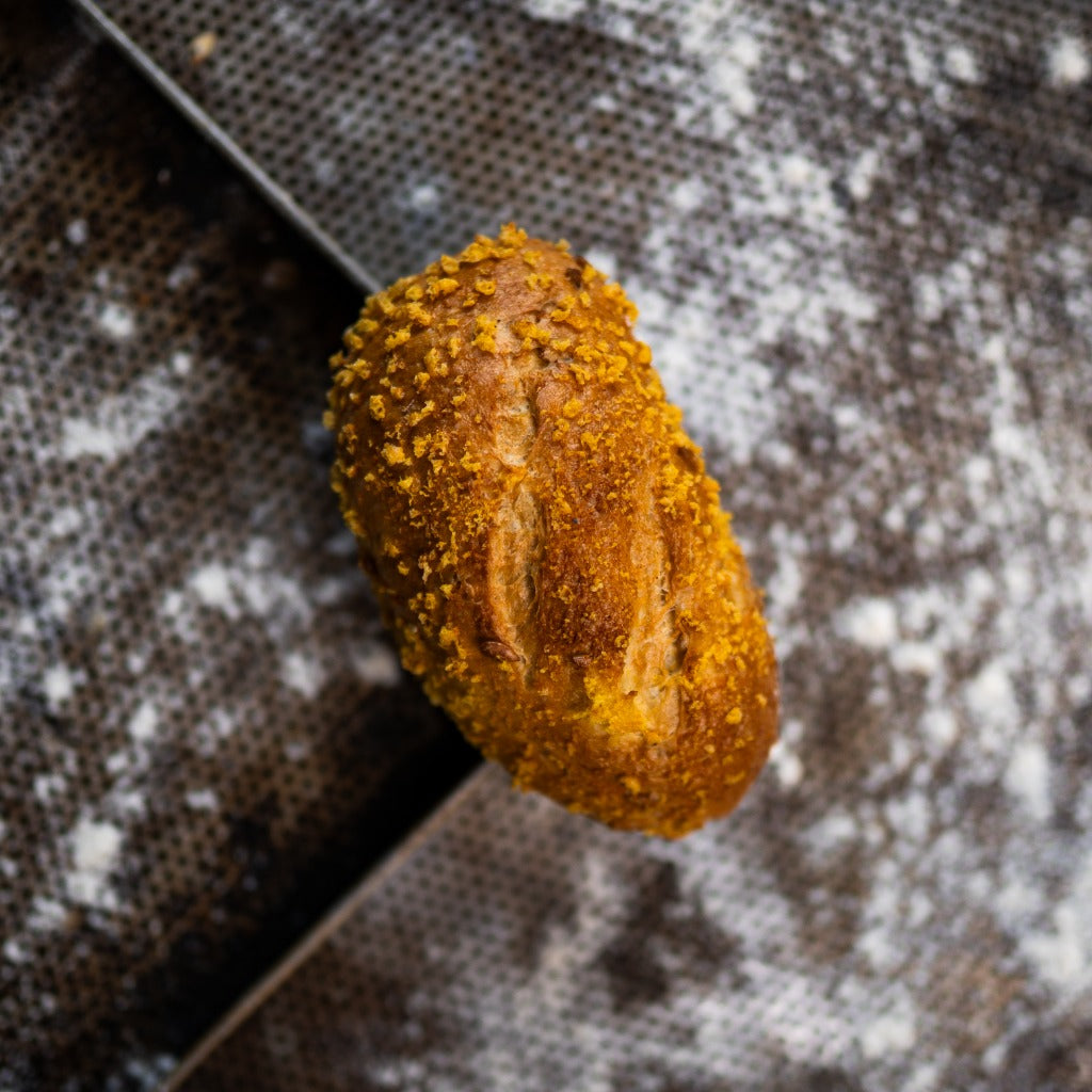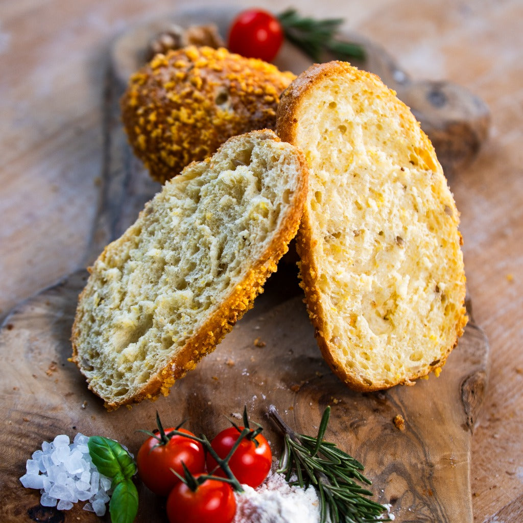 Unsere Maisbrötchen werden aus feinem Maismehl gebacken und begeistern mit ihrem unverwechselbar leicht süßlichen, nussigen Aroma. Kleine Sonnenblumenkerne im Teig sorgen für zusätzlichen Biss, während die knusprige Puffmais-Panade außen für ein besonderes Geschmackserlebnis und eine angenehme Textur sorgt. Goldbraun gebacken, saftig im Inneren und aromatisch im Geschmack.