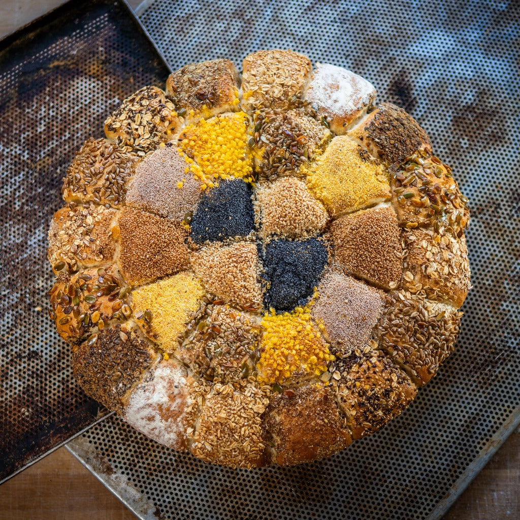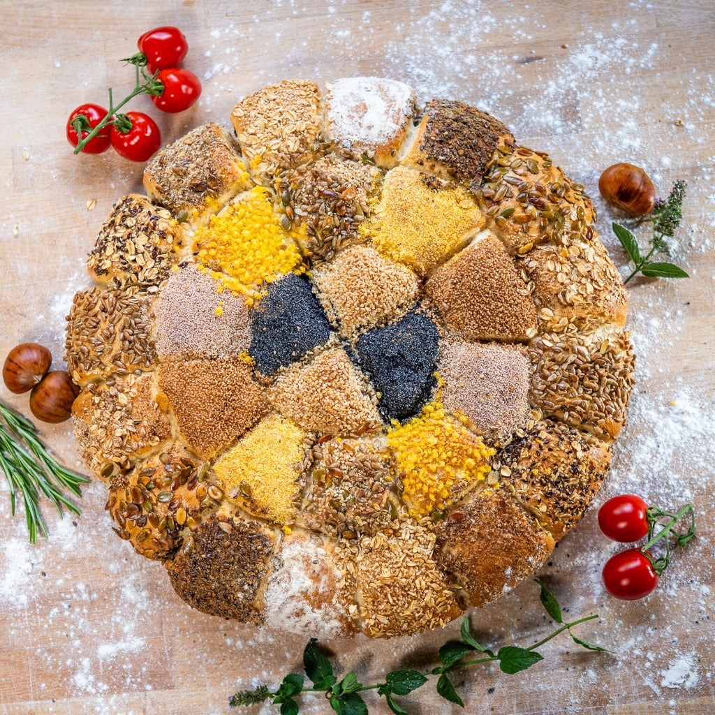 Unsere Partysonne ist der Hingucker auf jedem Tisch: 30 unterschiedlich bestreute Brötchen formen gemeinsam eine strahlende Sonne. Das bunte Farbenspiel aus aromatischen Körnern und geschmolzenem Käse macht sie nicht nur optisch besonders, sondern sorgt auch für abwechslungsreichen Geschmack bei jedem Bissen. Ideal für Partys, Buffets oder gesellige Runden – die Partysonne vereint Vielfalt, Genuss und pure Freude in einer unwiderstehlichen Präsentation.